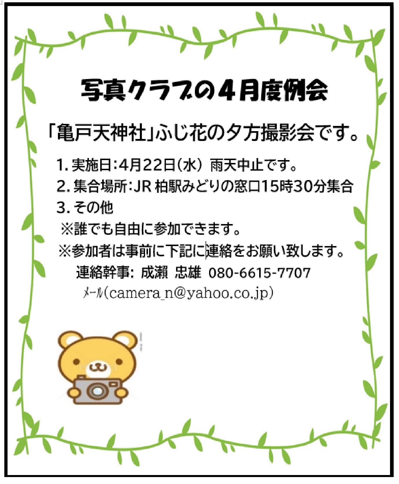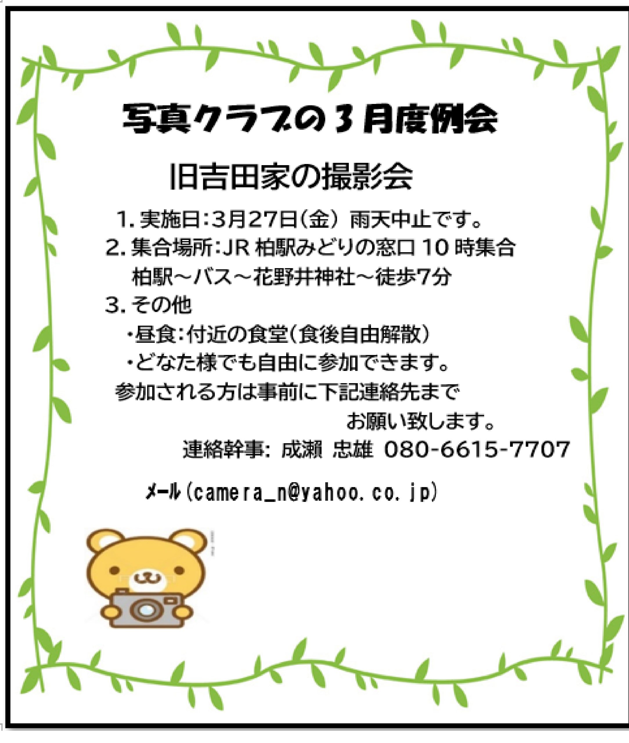 令和8年3月写真クラブの案内